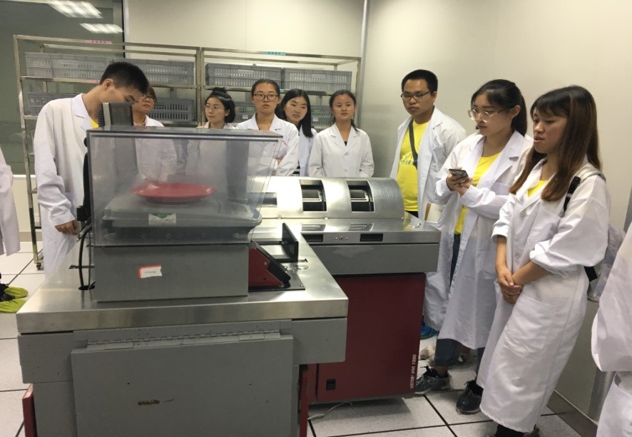 图为青大纺院援疆团在阿克苏地区纤维检验所检验室参观学习