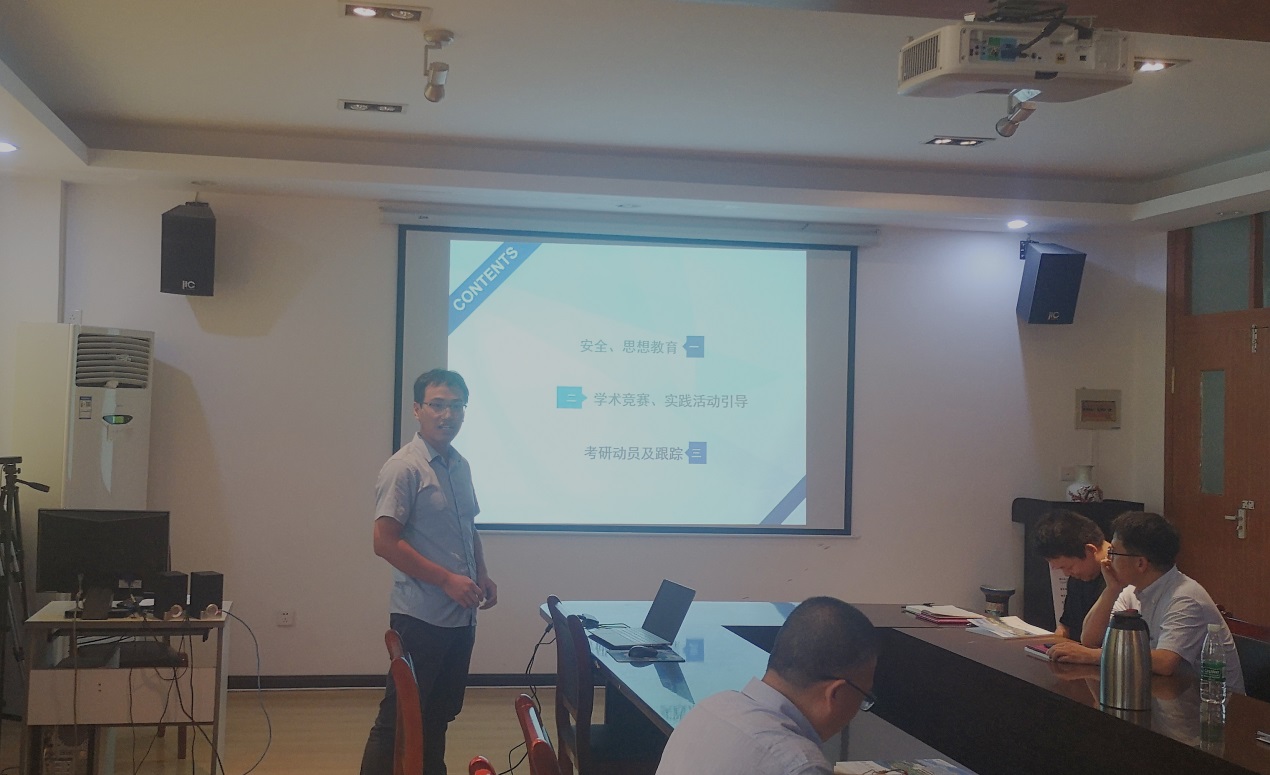 然后,进行了2020-2021年度学院优秀班主任评选交流会。毛凛鹤等3名优秀班主任进行了汇报交流,分享了作为班主任在学生政治思想教育、学风建设和学业指导、班级管理及文化建设、考研就业、创新创业、特殊学生群体帮扶等方面的工作经验和感悟。