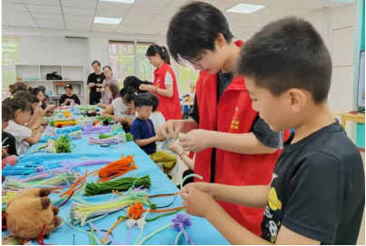 图2织韵同心队带领孩子们制作玫瑰花