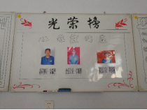 左图:张贴在墙的光荣榜 右图:车间班组在开会