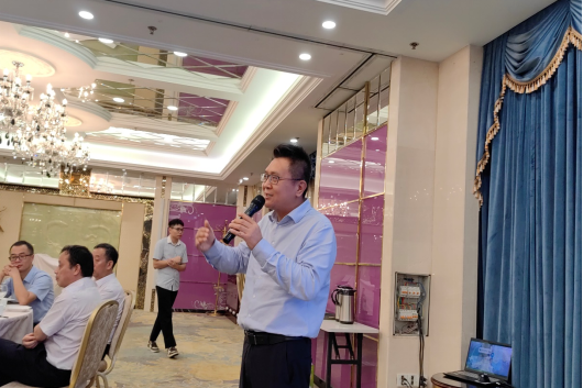 上海安诺其集团股份有限公司董事长纪立军在当日晚宴上发表致辞,对本次“安诺其”数码印花专题技术交流会议暨全国第二届生态纺织论坛的成功举办表示热烈的祝贺,并表示绿色发展与数字智能化已成为纺织印染行业的必然趋势,本次会议的成功举办对推动纺织数码印花行业绿色高质量发展、创新低碳发展、科学智能化发展具有重要意义。